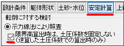 5.「荷重ケース」で「側壁外側を垂直と仮定し土圧係数を算出する」にチェックしていない。