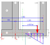 - 計算書の「底版の応力度計算書」において下記の全ての条件を満たしている場合、計算式の断面記号(断面@〜)と断面力一覧表の